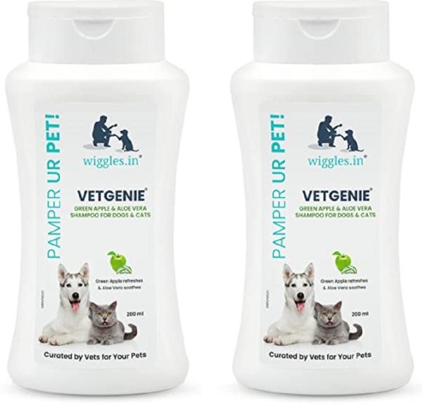 Wiggles Vetgenie Dog Cat Bath Shampoo Puppy 400ml Odor Eliminating Itching Skin Relief Improves Skin Coat Health Green Apple Aloe Vera Extract Pack Of 2 Jiomart